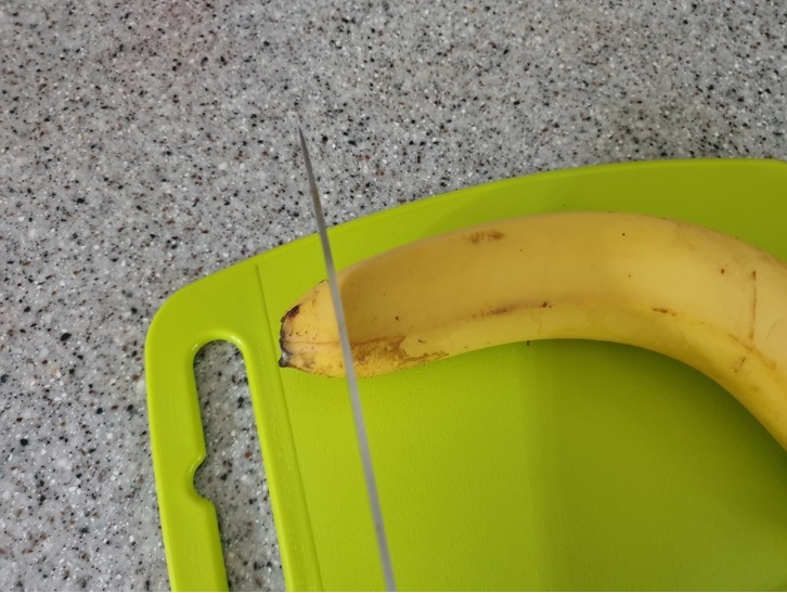 깨끗한 칼이나 가위로 바나나의 양끝을 잘라 주세요