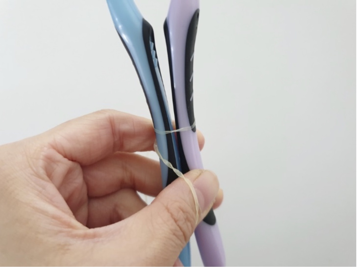 손잡이 부분을 고무줄로 단단하게 묶어줍니다