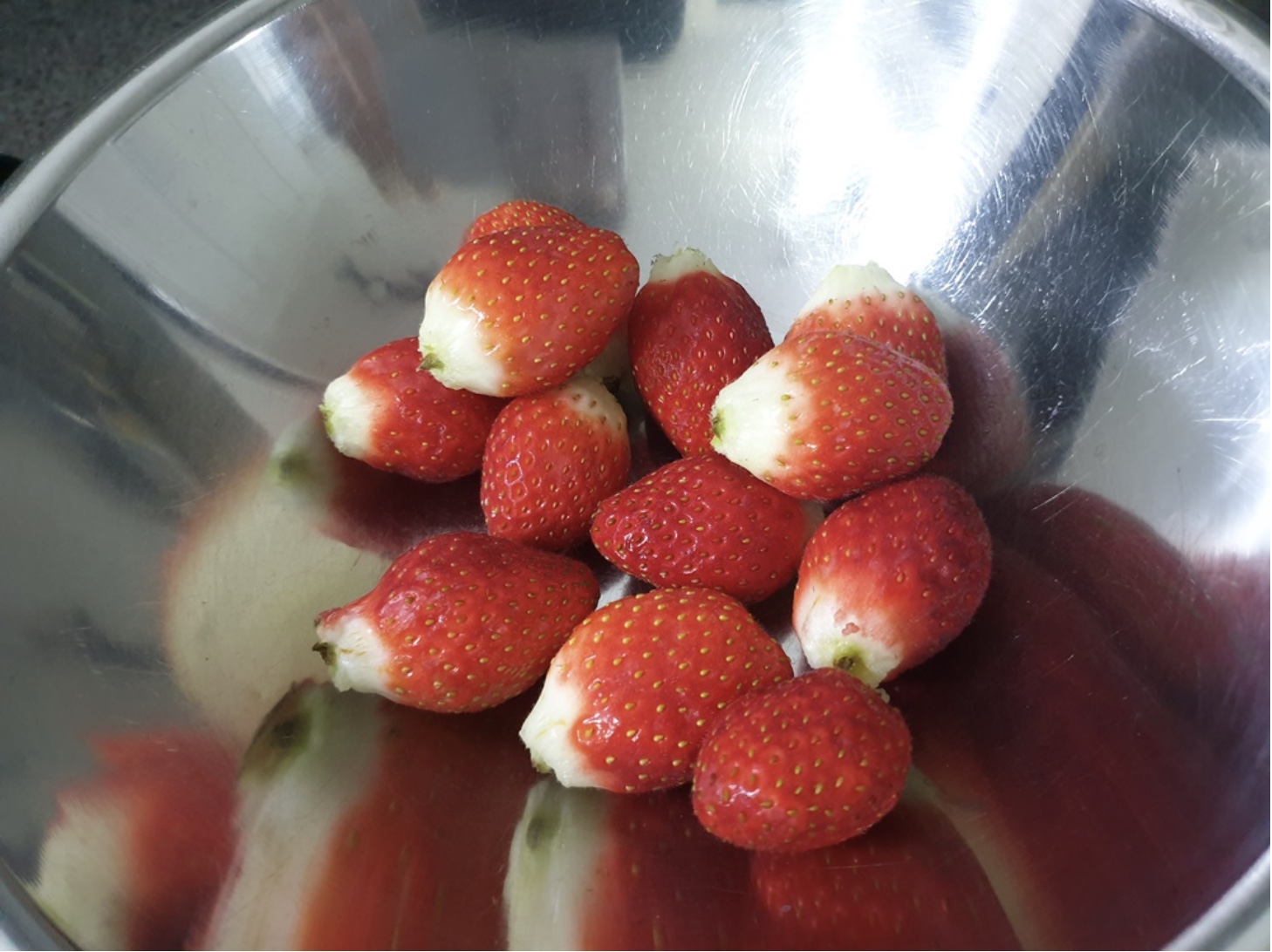 먼저 딸기를 씻기 전에 꼭지부터 떼어내 주세요