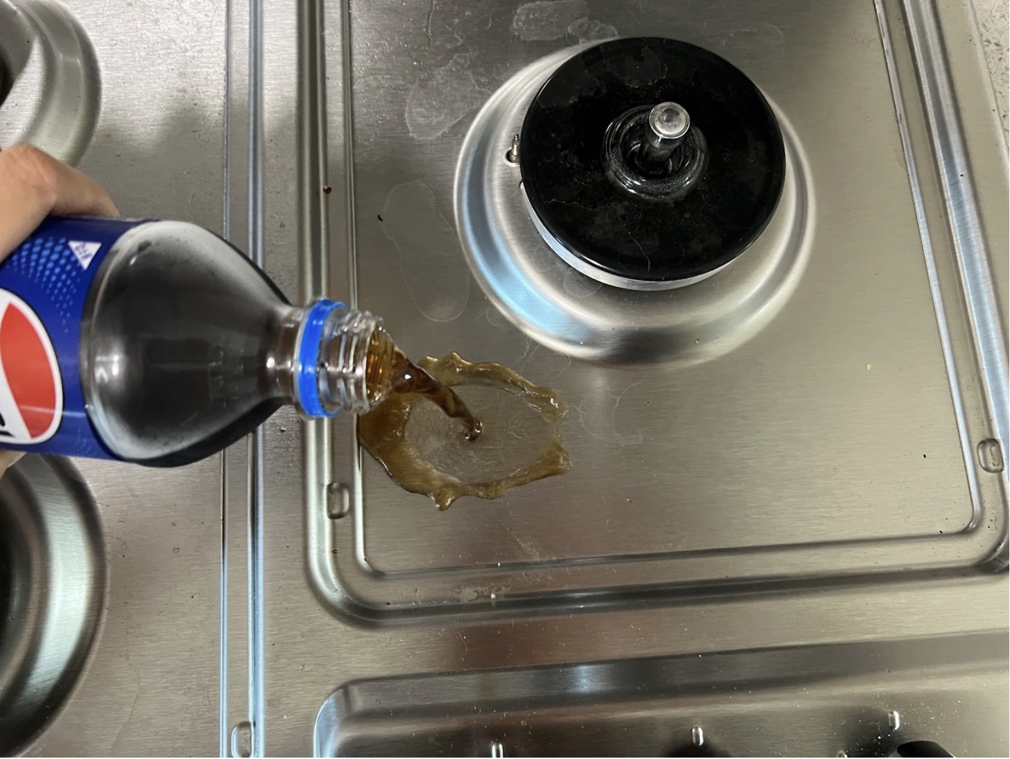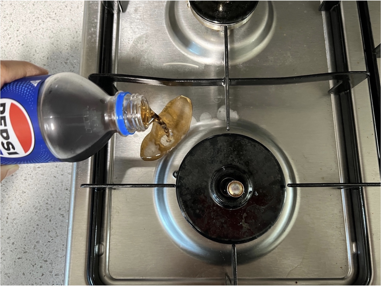 가스레인지에 김 빠진 콜라를 살살 부어주세요