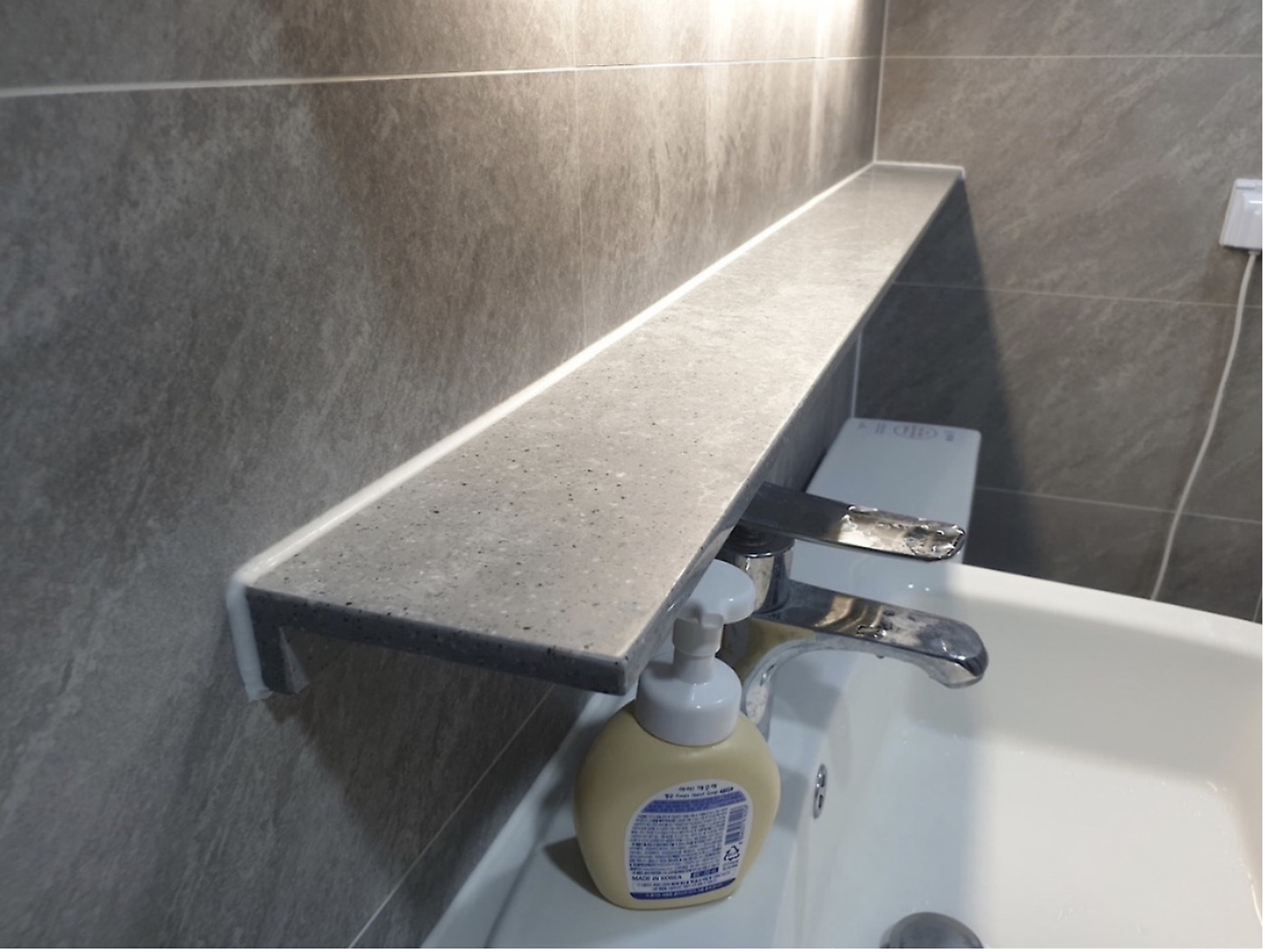 이렇게 세면대 뒤쪽부터 양변기까지 이어진 욕실 선반이에요