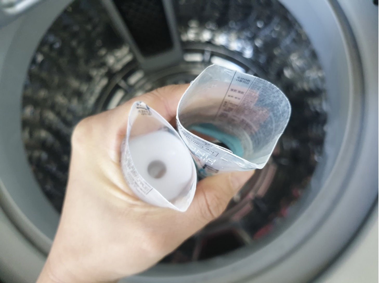 이렇게 잘라둔 치약을 세탁기에 투하~
