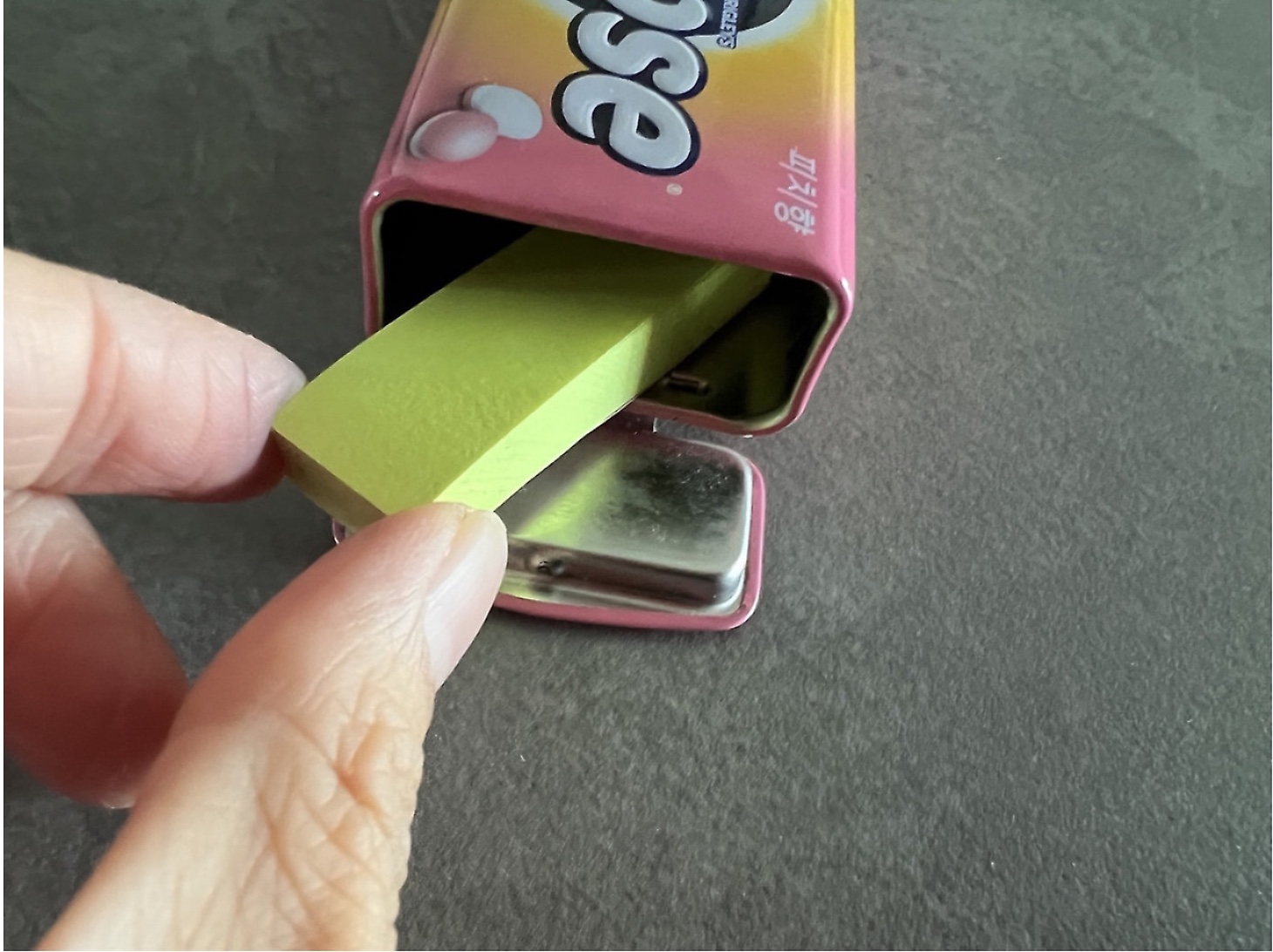 먼저 사탕을 다 먹은 틴케이스의 안쪽을 깨끗하게 닦아주세요