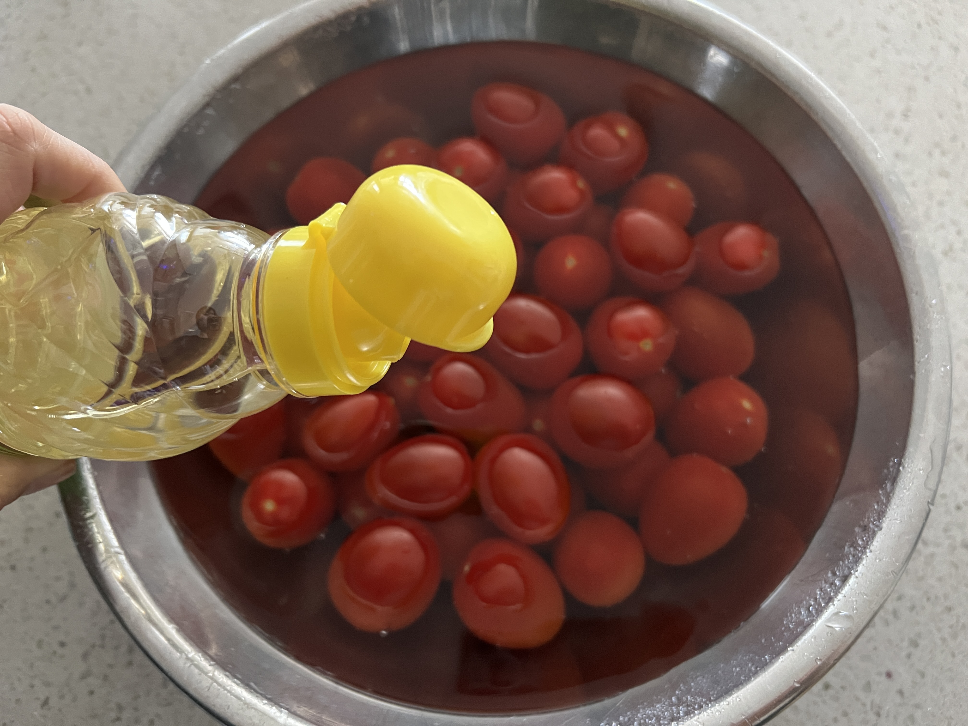 먼저 방울토마토를 세척하기 전에 꼭지부터 떼어내줍니다