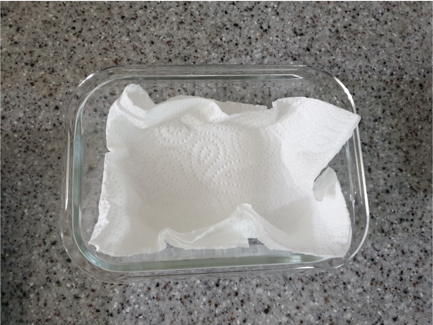 밀폐용기에 키친타월을 2~3장 정도 깔아준 다음