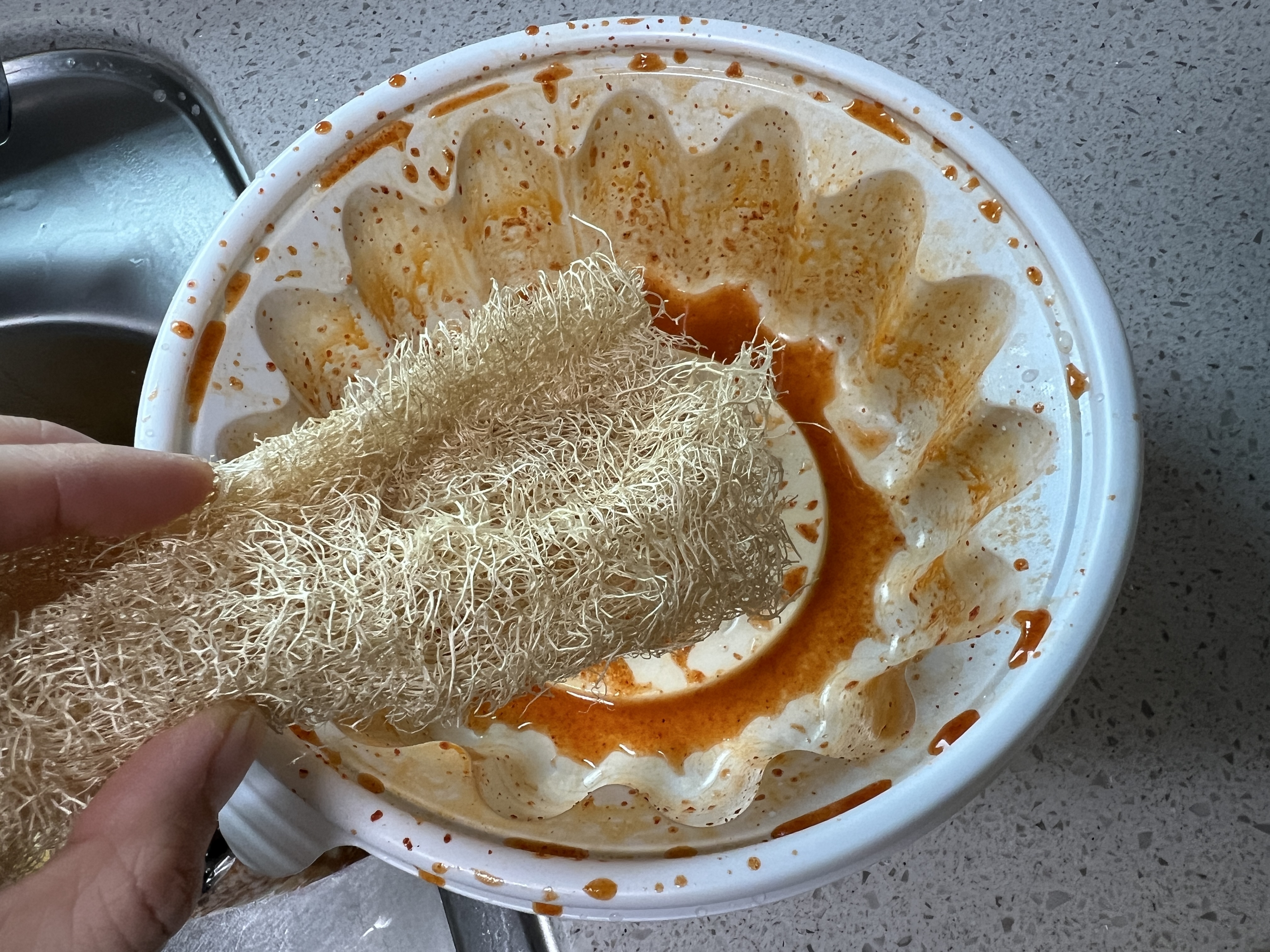 손에 고추기름 묻히지도 않고 수세미도 더럽히지 않고 깨끗하게 씻었어요